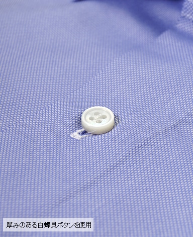 天然白蝶貝使用。その輝きは天然貝の最高級品として世界の高級ドレスシャツに使用されています。