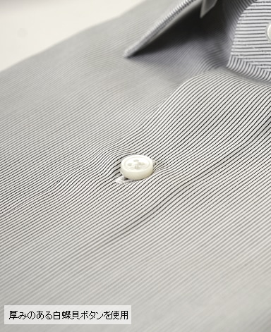 天然白蝶貝使用。その輝きは天然貝の最高級品として世界の高級ドレスシャツに使用されています。