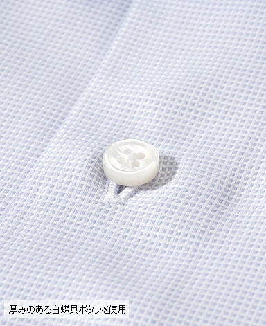 天然白蝶貝使用。その輝きは天然貝の最高級品として世界の高級ドレスシャツに使用されています。