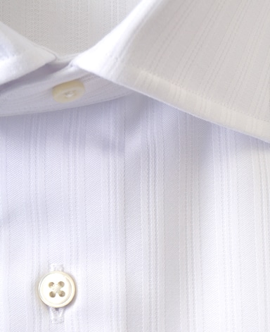 通常針目は3cmに18針以上で高級とされていますが、私たちのシャツは21針で縫い上げられています。また、耐久性に優れた「巻き伏せ本縫い」でシャツを仕立てています。