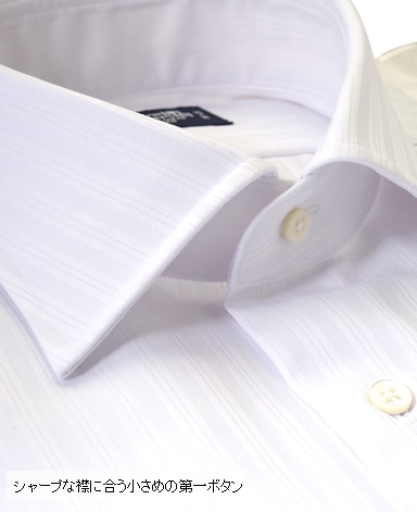 ■襟の表裏のパターンに差をつけ、コンパクトかつ構築的な襟を実現。品の良いドレスシャツの証である、首に巻きつくような内巻きフォルムは、匠によるいせ込み技術の成果です。