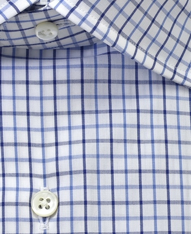 ■襟の表裏のパターンに差をつけ、コンパクトかつ構築的な襟を実現。品の良いドレスシャツの証である、首に巻きつくような内巻きフォルムは、匠によるいせ込み技術の成果です。