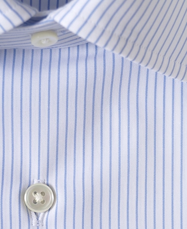 通常針目は3cmに18針以上で高級とされていますが、私たちのシャツは21針で縫い上げられています。また、耐久性に優れた「巻き伏せ本縫い」でシャツを仕立てています。