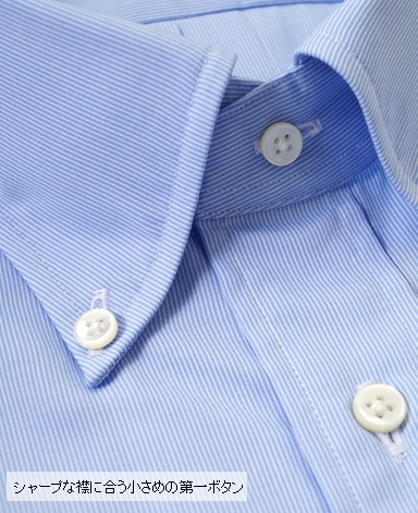■第一ボタンには、シャープな襟に合う小さめの9mmボタンを使用。