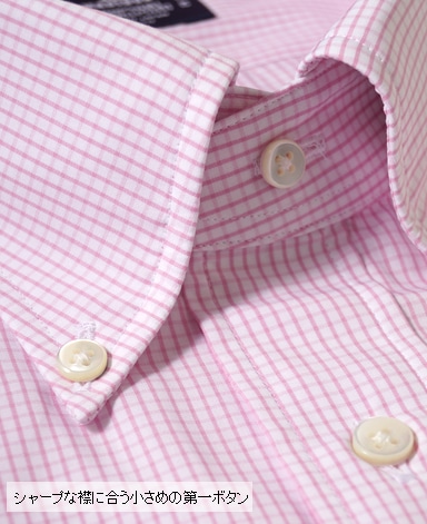 ■第一ボタンには、シャープな襟に合う小さめの9mmボタンを使用。