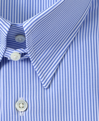 ■襟の表裏のパターンに差をつけ、コンパクトかつ構築的な襟を実現。品の良いドレスシャツの証である、首に巻きつくような内巻きフォルムは、匠によるいせ込み技術の成果です。