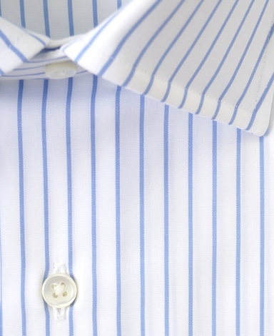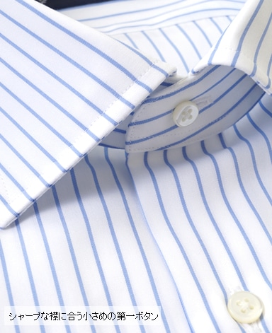 ■襟の表裏のパターンに差をつけ、コンパクトかつ構築的な襟を実現。品の良いドレスシャツの証である、首に巻きつくような内巻きフォルムは、匠によるいせ込み技術の成果です。