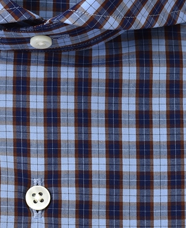 ■襟の表裏のパターンに差をつけ、コンパクトかつ構築的な襟を実現。品の良いドレスシャツの証である、首に巻きつくような内巻きフォルムは、匠によるいせ込み技術の成果です。