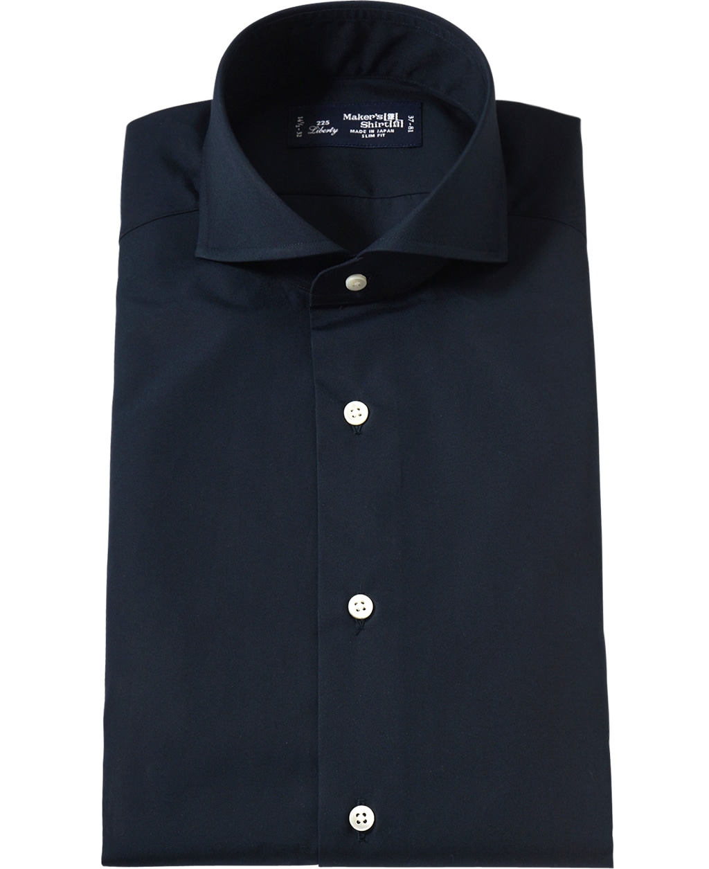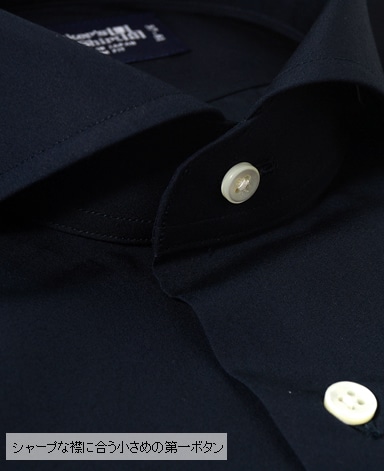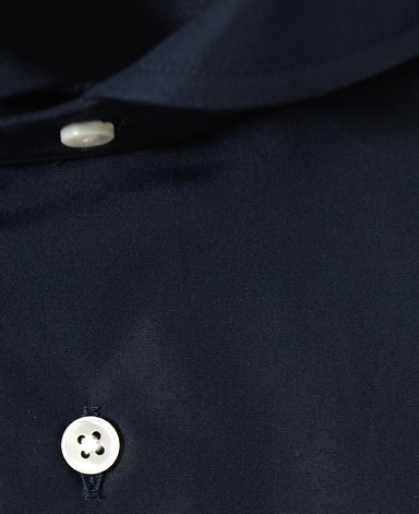 ■襟の表裏のパターンに差をつけ、コンパクトかつ構築的な襟を実現。品の良いドレスシャツの証である、首に巻きつくような内巻きフォルムは、匠によるいせ込み技術の成果です。