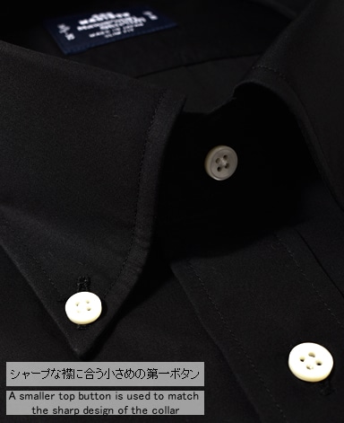 ■第一ボタンには、シャープな襟に合う小さめの9mmボタンを使用。