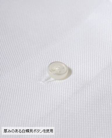 天然白蝶貝使用。その輝きは天然貝の最高級品として世界の高級ドレスシャツに使用されています。