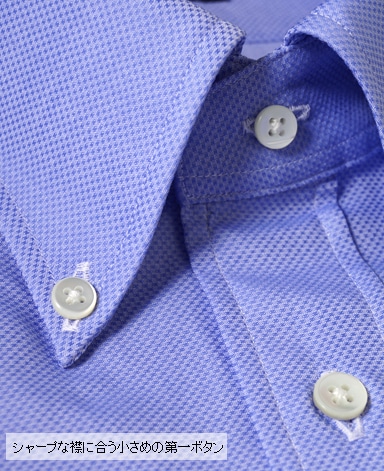 ■第一ボタンには、シャープな襟に合う小さめの9mmボタンを使用。