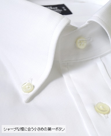 ■第一ボタンには、シャープな襟に合う小さめの9mmボタンを使用。