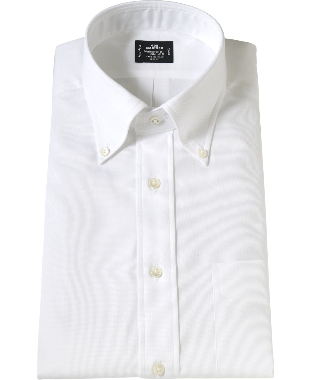 通常針目は3cmに18針以上で高級とされていますが、私たちのシャツは21針で縫い上げられています。また、耐久性に優れた「巻き伏せ本縫い」でシャツを仕立てています。