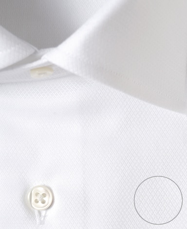 ■襟の表裏のパターンに差をつけ、コンパクトかつ構築的な襟を実現。品の良いドレスシャツの証である、首に巻きつくような内巻きフォルムは、匠によるいせ込み技術の成果です。
