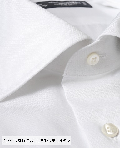 ■第一ボタンには、シャープな襟に合う小さめの9mmボタンを使用。
