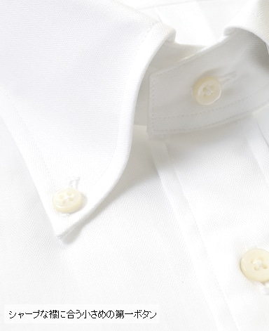 ■第一ボタンには、シャープな襟に合う小さめの9mmボタンを使用。