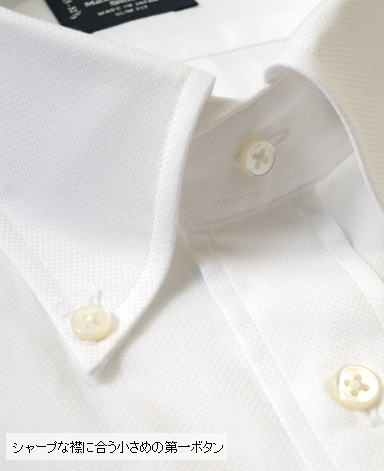 ■第一ボタンには、シャープな襟に合う小さめの9mmボタンを使用。