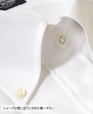 ■第一ボタンには、シャープな襟に合う小さめの9mmボタンを使用。