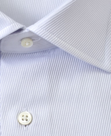 ■襟の表裏のパターンに差をつけ、コンパクトかつ構築的な襟を実現。品の良いドレスシャツの証である、首に巻きつくような内巻きフォルムは、匠によるいせ込み技術の成果です。