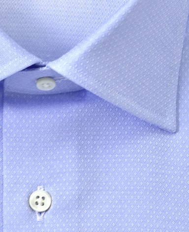 ■襟の表裏のパターンに差をつけ、コンパクトかつ構築的な襟を実現。品の良いドレスシャツの証である、首に巻きつくような内巻きフォルムは、匠によるいせ込み技術の成果です。