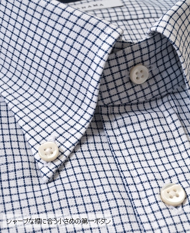 ■第一ボタンには、シャープな襟に合う小さめの9mmボタンを使用。