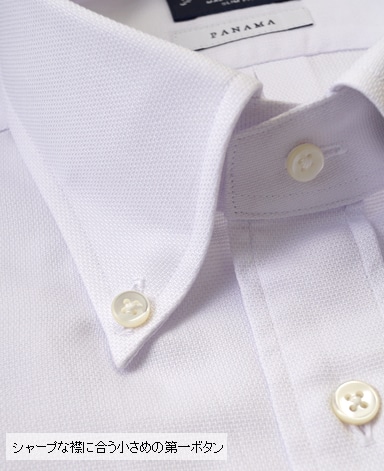 ■第一ボタンには、シャープな襟に合う小さめの9mmボタンを使用。