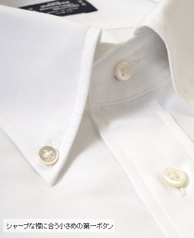 ■第一ボタンには、シャープな襟に合う小さめの9mmボタンを使用。