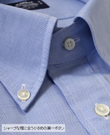 ■第一ボタンには、シャープな襟に合う小さめの9mmボタンを使用。