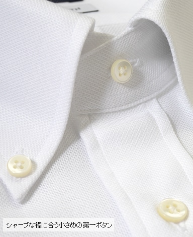 ■第一ボタンには、シャープな襟に合う小さめの9mmボタンを使用。
