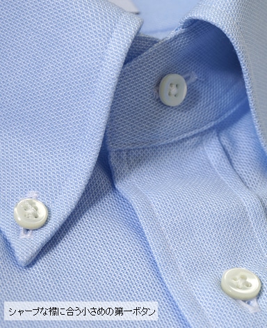 ■第一ボタンには、シャープな襟に合う小さめの9mmボタンを使用。