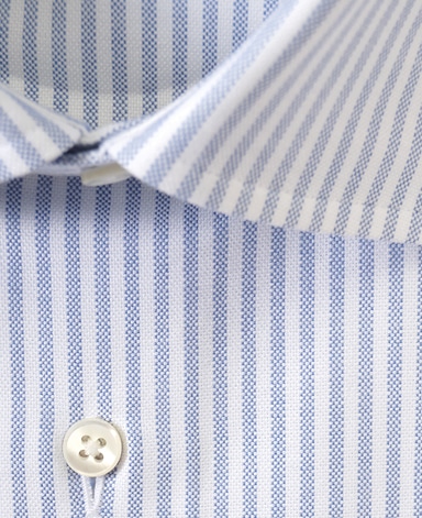 通常針目は3cmに18針以上で高級とされていますが、私たちのシャツは21針で縫い上げられています。また、耐久性に優れた「巻き伏せ本縫い」でシャツを仕立てています。