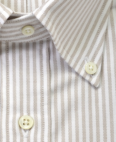 通常針目は3cmに18針以上で高級とされていますが、私たちのシャツは21針で縫い上げられています。また、耐久性に優れた「巻き伏せ本縫い」でシャツを仕立てています。