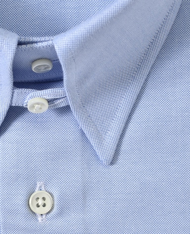 ■襟の表裏のパターンに差をつけ、コンパクトかつ構築的な襟を実現。品の良いドレスシャツの証である、首に巻きつくような内巻きフォルムは、匠によるいせ込み技術の成果です。