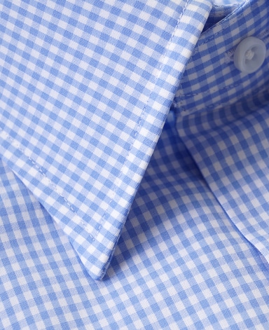 ■襟の表裏のパターンに差をつけ、コンパクトかつ構築的な襟を実現。品の良いドレスシャツの証である、首に巻きつくような内巻きフォルムは、匠によるいせ込み技術の成果です。