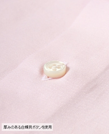 天然白蝶貝使用。その輝きは天然貝の最高級品として世界の高級ドレスシャツに使用されています。