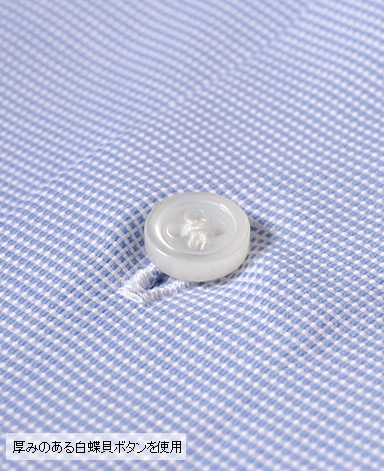 天然白蝶貝使用。その輝きは天然貝の最高級品として世界の高級ドレスシャツに使用されています。
