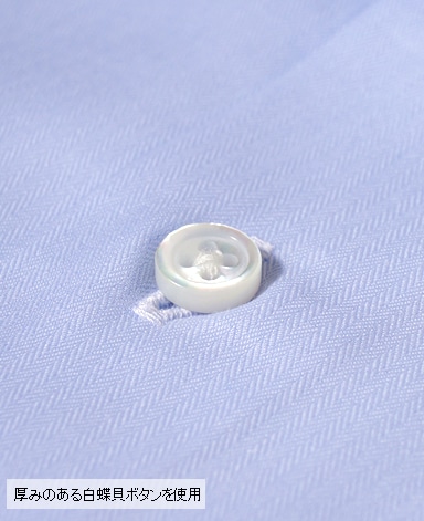 天然白蝶貝使用。その輝きは天然貝の最高級品として世界の高級ドレスシャツに使用されています。