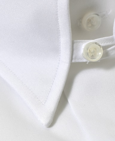 ■襟の表裏のパターンに差をつけ、コンパクトかつ構築的な襟を実現。品の良いドレスシャツの証である、首に巻きつくような内巻きフォルムは、匠によるいせ込み技術の成果です。