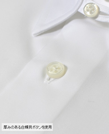 ■第一ボタンには、シャープな襟に合う小さめの9mmボタンを使用。