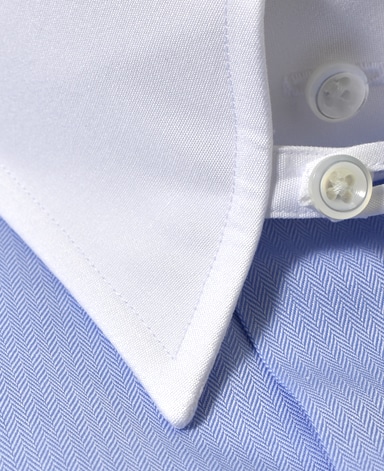 ■襟の表裏のパターンに差をつけ、コンパクトかつ構築的な襟を実現。品の良いドレスシャツの証である、首に巻きつくような内巻きフォルムは、匠によるいせ込み技術の成果です。