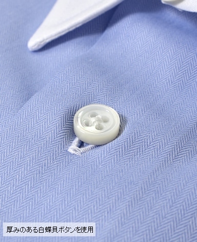 ■第一ボタンには、シャープな襟に合う小さめの9mmボタンを使用。