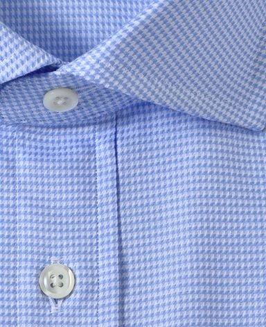 通常針目は3cmに18針以上で高級とされていますが、私たちのシャツは21針で縫い上げられています。また、耐久性に優れた「巻き伏せ本縫い」でシャツを仕立てています。