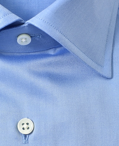 ■襟の表裏のパターンに差をつけ、コンパクトかつ構築的な襟を実現。品の良いドレスシャツの証である、首に巻きつくような内巻きフォルムは、匠によるいせ込み技術の成果です。
