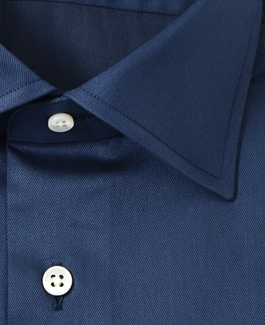 ■襟の表裏のパターンに差をつけ、コンパクトかつ構築的な襟を実現。品の良いドレスシャツの証である、首に巻きつくような内巻きフォルムは、匠によるいせ込み技術の成果です。