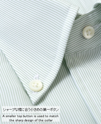 ■第一ボタンには、シャープな襟に合う小さめの9mmボタンを使用。