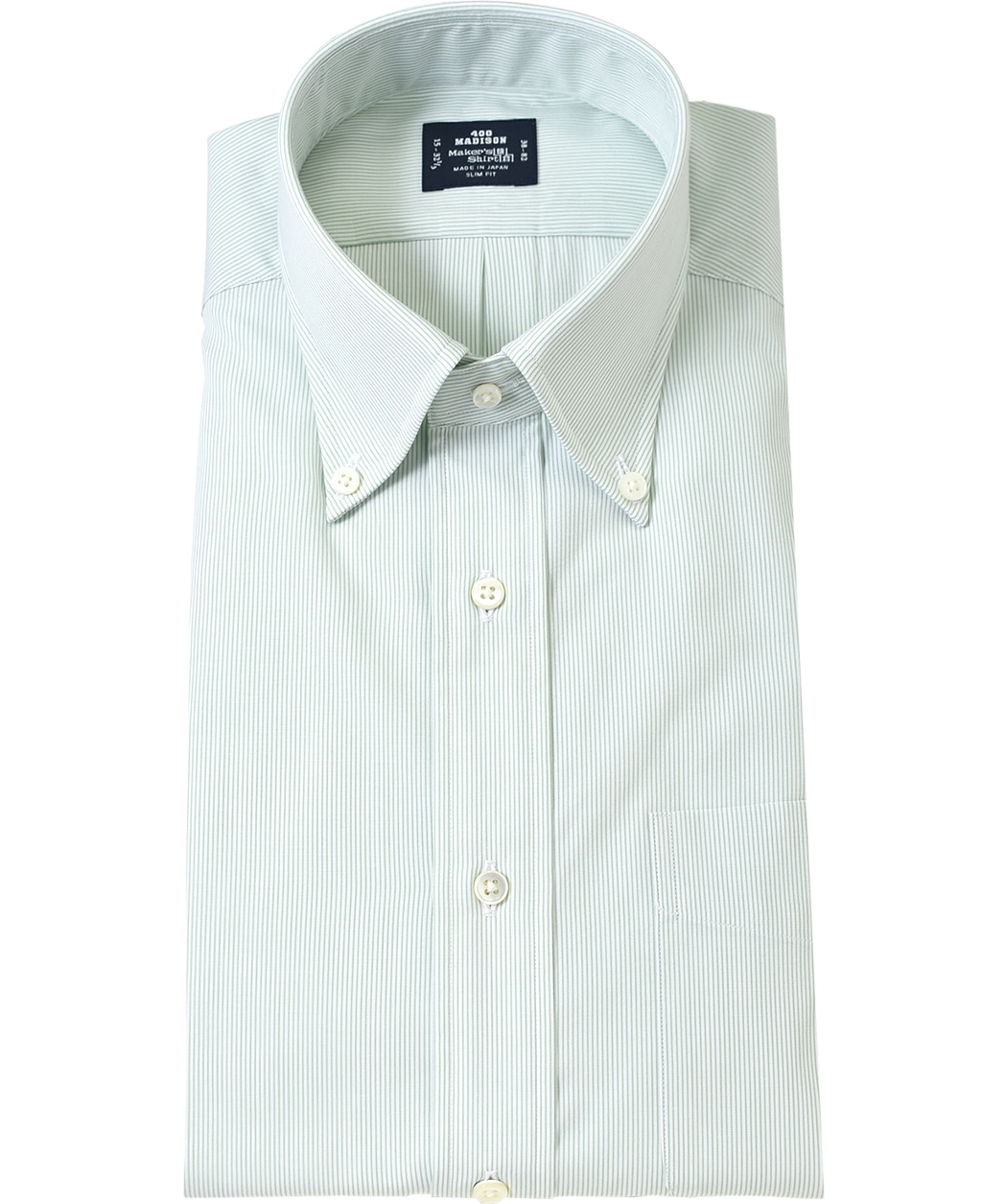 通常針目は3cmに18針以上で高級とされていますが、私たちのシャツは21針で縫い上げられています。また、耐久性に優れた「巻き伏せ本縫い」でシャツを仕立てています。