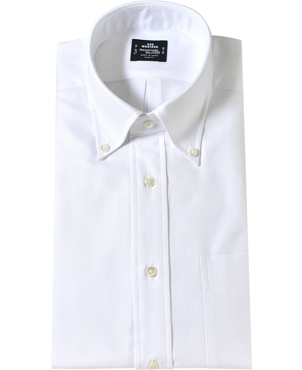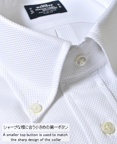通常針目は3cmに18針以上で高級とされていますが、私たちのシャツは21針で縫い上げられています。また、耐久性に優れた「巻き伏せ本縫い」でシャツを仕立てています。