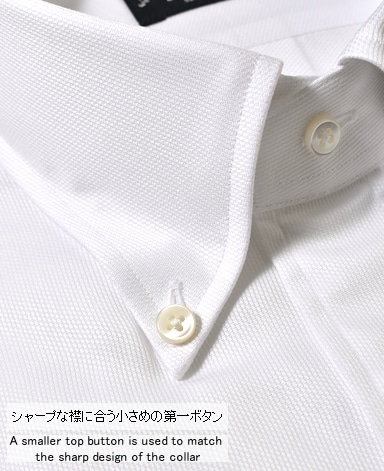 ■第一ボタンには、シャープな襟に合う小さめの9mmボタンを使用。