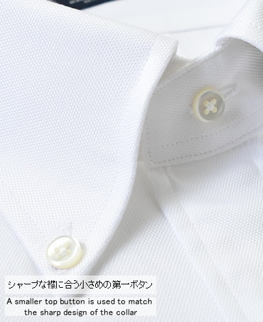 ■第一ボタンには、シャープな襟に合う小さめの9mmボタンを使用。